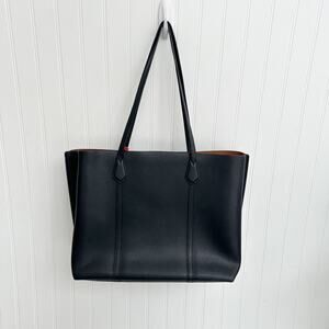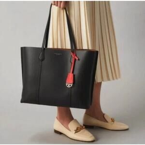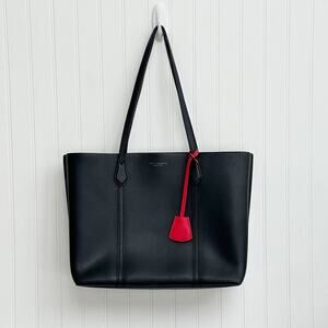 Tory Burch Perry Triple Compartment Tote Shopper Bag Leather Black Red Purse