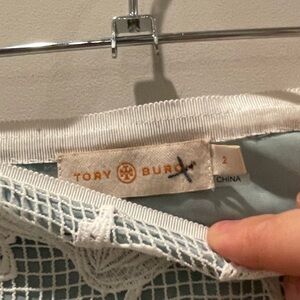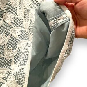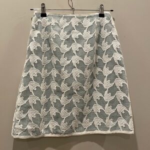 Tory Burch Pierce Embroidered Skirt | White + Mint Green Overlay Skirt Size 2