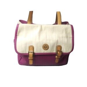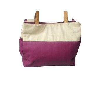 Tory Burch Pierson~ Mini Canvas Leather Beach Tote Fuchsia Pink $275 AS IS