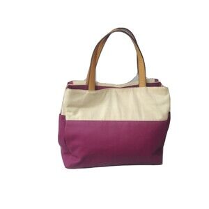 Tory Burch Pierson Mini Canvas Leather Beach Tote Fuchsia Pink $275 AS IS