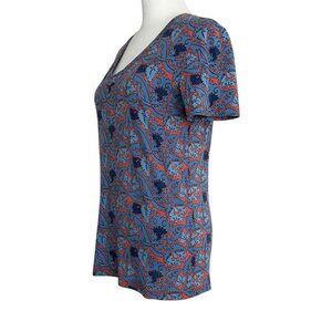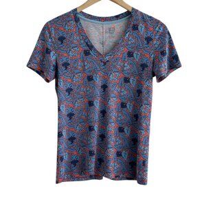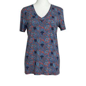 Tory Burch Sea Coral Artemis 100% Pima Cotton V-Neck Floral T-Shirt Top
