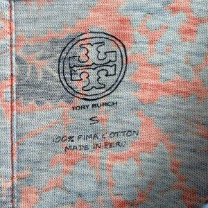 Tory Burch Pima Cotton V-Neck Sea Coral Artemis Short Sleeve T Shirt Top (S)