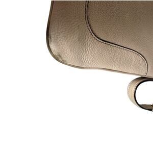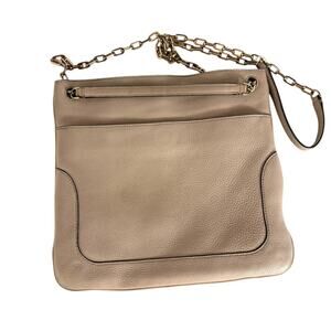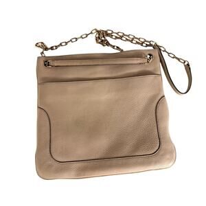 Tory Burch pebbled leather shoulder double gold chain strap bag.