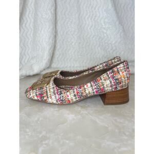 Tory Burch Pink Cream Gold Tweed Wooden Block Heel Georgia Pump Womens 7 US