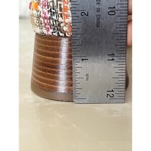Tory Burch Pink Cream Gold Tweed Wooden Block Heel Georgia Pump Womens 7 US