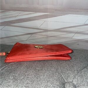 Tory Burch Pink Gold Logo Cameron Nylon Medium Wristlet Wallet- Pre Loved
