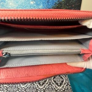 Tory Burch Pink Pebbled Leather Clutch Wallet with Logo Medallion and strap EUC