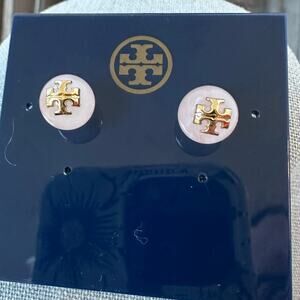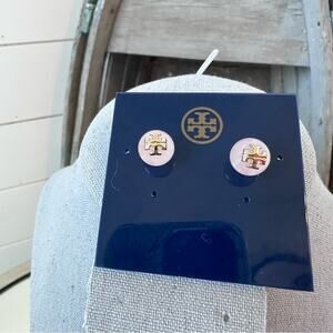 Tory Burch - Pink Quartz Evie Logo Stud Earrings, NWT, pierced