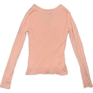 Pink wool knit (100% Merino Wool). Long sleeves. V-neckline. Gold decorative buttons. Imported.