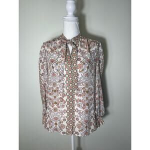 Tory Burch Pink and Cream Floral Print Blouse Sz 2