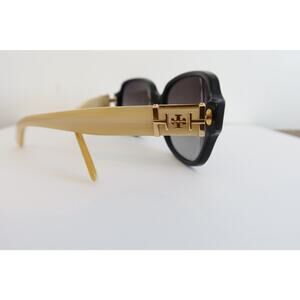 Tory Burch Polarized Sunglasses Black Frames with Ivory Sides TY7073 EUC!