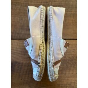 Tory Burch Poppy Espadrille Canvas Leather Tan Logo Womens Flat Shoes Size 8