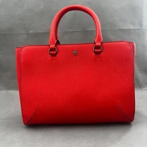 Tory Burch Poppy Orange Zip Emerson Saffiano Leather Satchel