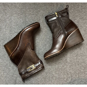 Tory Burch Primrose Boots Brown Leather Faux Fur Zip Up - Womens 8