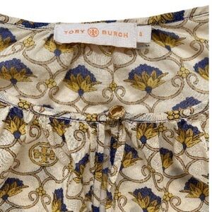 Tory Burch Print Tunic Blouse Long Sleeves featuring “Tory Burch” Embossed Buttons at sleeves and Keyhole Neck