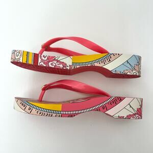 Tory Burch Printed Carved Wedge Flip-flop in Coral Pink Paradise Constellation