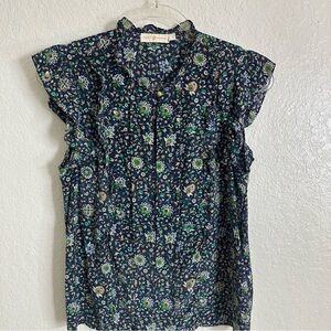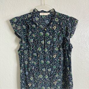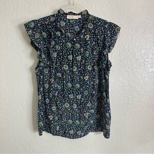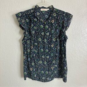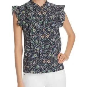 Tory Burch Printed Ruffle Shell Top size 4