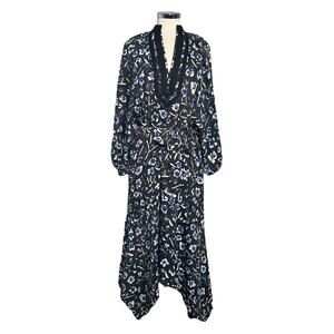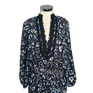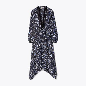 Tory Burch Puffed Sleeve Printed Tunic Dress Midnight Teapot - Size Small