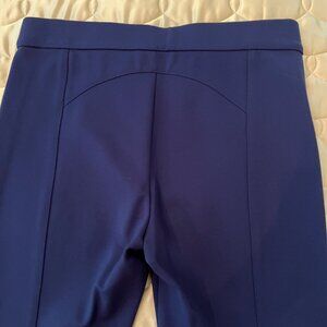 These pants are made from a thick stretchy fabric that is extremely flattering. There are no bulky zippers or waistbands. Instead there are vertical seams at the front and back that will give you a streamlined shape without any bulges. I absolutely love these pants and its beautiful dark cobalt blue color, but now they are too tight on me. The 1.5" wide waistband measures 14.5" across and the inseam is 27" with a 9.5" rise. They have a snug fit with a slight flare at the leg. They are in brand new condition.