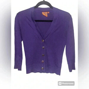 Tory Burch Long Sleeve Purple Cardigan with Button Accents