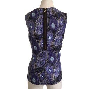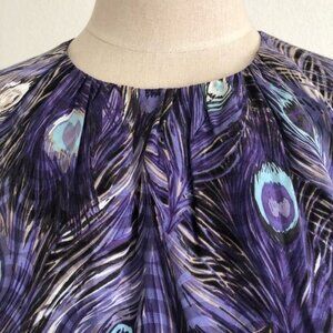 Tory Burch purple feather print top. Lined. Back zipper closure. Great condition. NO TRADES.