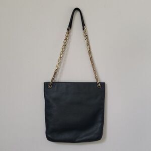 Tory Burch Purse Black Pebbled Leather Swingpack Chain Shoulder Bag Crossbody