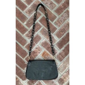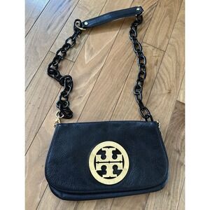 Tory Burch Purse Handbag Clutch Bag Chain Link Black Shoulder Strap Remo…
