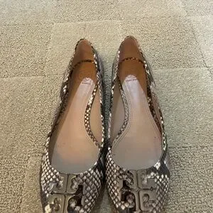 Elegant flats with a stylish python pattern. Features a chic black and cream design. Perfect for versatile wear.