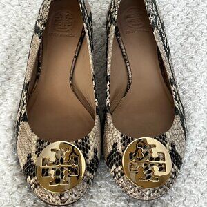 Tory Burch Python Snake Print Leather Reva Flats Womens Size 8