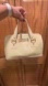 Tory Burch, vintage patent leather satchel, it’s like a very pale, yellow ivory cream, possibly color , gold hardware zipper snaps on the sides, which have two pockets 4 feet on the bottom corners are all excellent zippers run very smoothly. The interior is very clean one open pocket two side slot pockets and a side zip pocket the one Mark on the front is noted in the photo. The bag measures 12 1/2 x 9 1/2 x 6 strap drop is 4 1/2 please look at all pictures closely, it does come with a COA