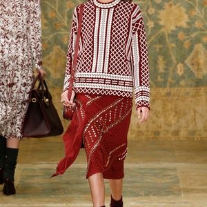 Tory Burch RUNWAY burgundy asymmetrical sk…