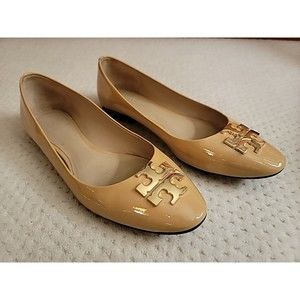 Tory Burch Raleigh Patent Leather Ballet Flats, BEIGE 8.5 EUC