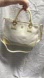 Ivory/cream saffiano flexible leather with light yellow patent leather trim.
