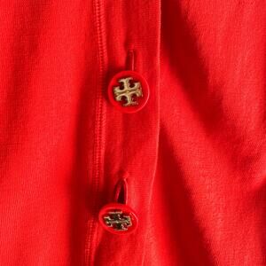 Tory Burch Red Button Front V Neck Cardigan Sweater