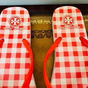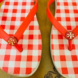 Tory Burch Womens Sandals Size 6 Flip Flops Beach Pool Summer Gingham Red Slides