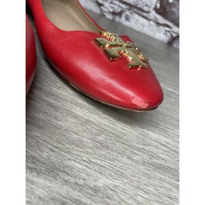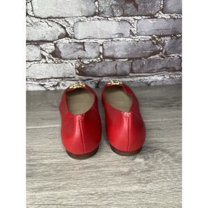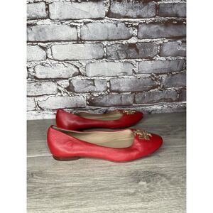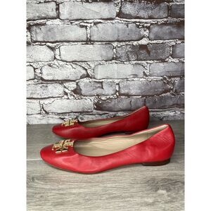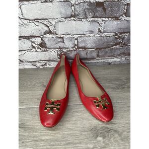 Tory Burch Red Leather Gold Badge Logo Ballet Flats Shoes Women Sz 8.5M US/39EU