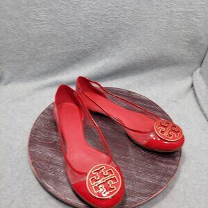 Tory Burch Red Logo Jelly Ballet Flats Womens Size 10