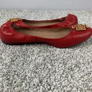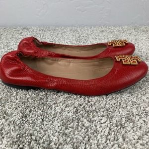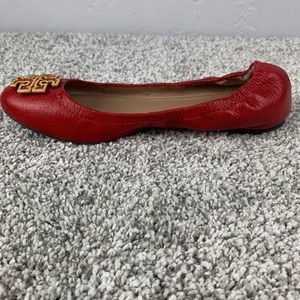 Tory Burch Red Melinda Ballet Flats Leather Women's Classic Preppy Size 8.5