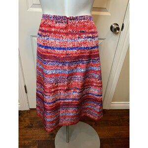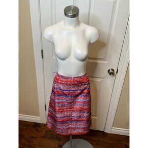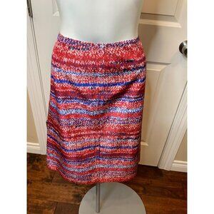 Tory Burch Red Mouline Bright Knit Print Pencil Skirt 100% Silk Size 12 NWT $395