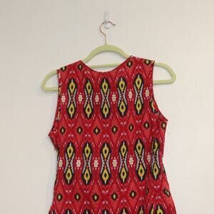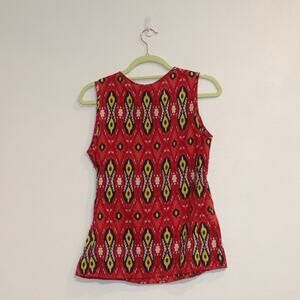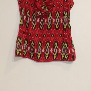 Tory Burch Red Multicolor Ikat Print Sleeveless Blouse Sz 2
