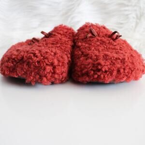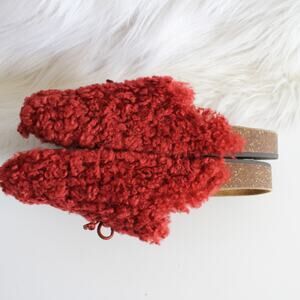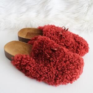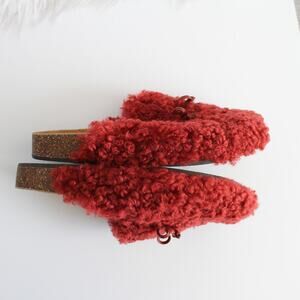 Tory Burch Red Shearling Fluffy Mammoth Slip-On Footbed Mule