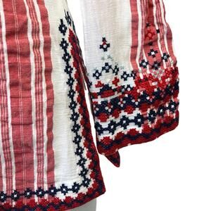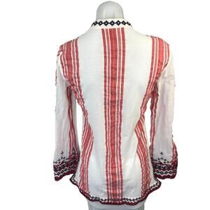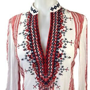 Tory Burch Red White Striped Embroidered Long Sleeve Tunic Blouse Top Size S