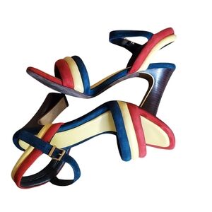 Tory Burch Red and Blue Heels Vibrant Color Block Design