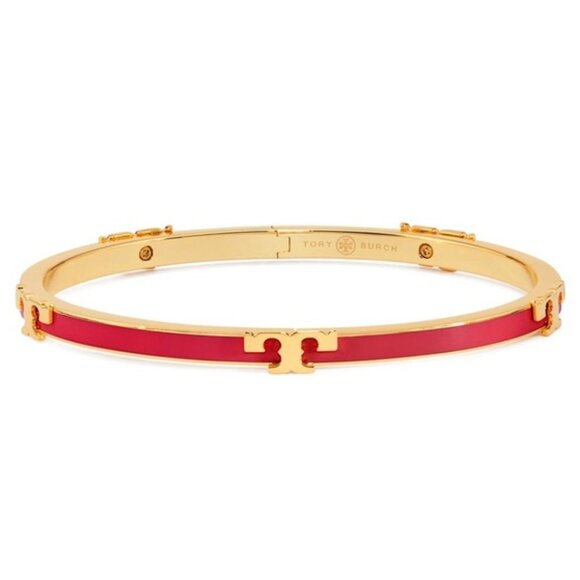 Elegant Gold and Red Enamel Tory Burch Sherif Bangle Logo Bracelet