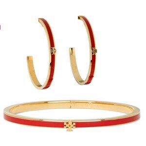 Tory Burch Red and Gold Kira Earring and Bracelet Set!
