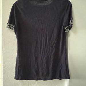 The Tory Burch Linen Navy Blue Top in size Medium is a stylish and comfortable blouse perfect for casual occasions. With its medium relax fit, short sleeves, and round neck, this top offers a relaxed and effortless style. Made from linen material, it is ideal for the summer, fall, and spring seasons, providing breathable comfort. The navy blue color adds a classic touch, while the designer brand adds a touch of luxury to the basic style. Perfect for any women looking to add a designer piece to their wardrobe.