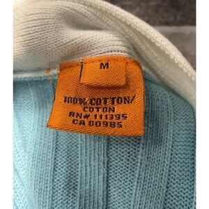 Tory Burch Retro Blue Ribbed V Neck Cardigan Gold Logo Buttons M
