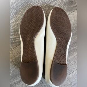Tory Burch Reva Ballet Flat Nellie Nappa Metal Logo in Vanilla & Pewter Size 8.5