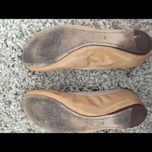 Nude ballet flats with flexible band; worn under 10 times, slight scuffing on sole of shoe.