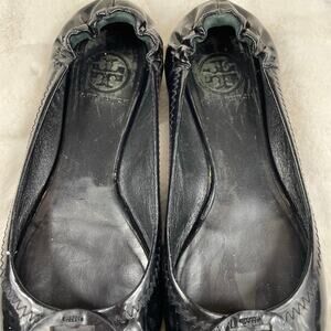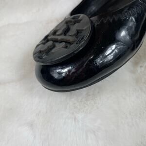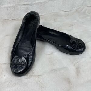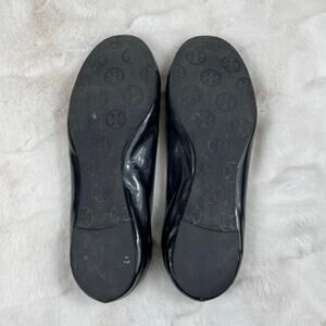 🔥Tory Burch Reva Ballet Flats Black Patent Leather Shoes Logo Women Size 6